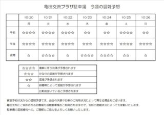 10月20日(月)から10月26日(日)までの駐車場混雑予想をご案内します。