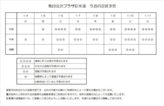 1月4日(日)から1月11日(日)までの駐車場混雑予想をご案内します。
