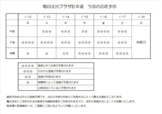 1月12日(月)から1月18日(日)までの駐車場混雑予想をご案内します。