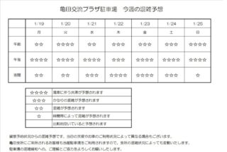 1月19日(月)から1月25日(日)までの駐車場混雑予想をご案内します。