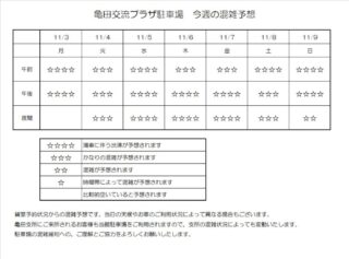 11月3日(月)から11月9日(日)までの駐車場混雑予想をご案内します。