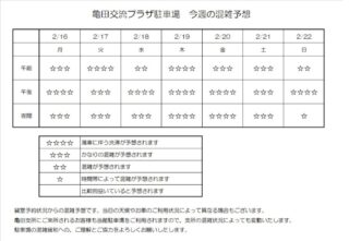 2月16日(月)から2月22日(日)までの駐車場混雑予想をご案内します。